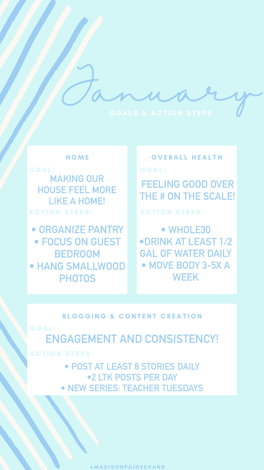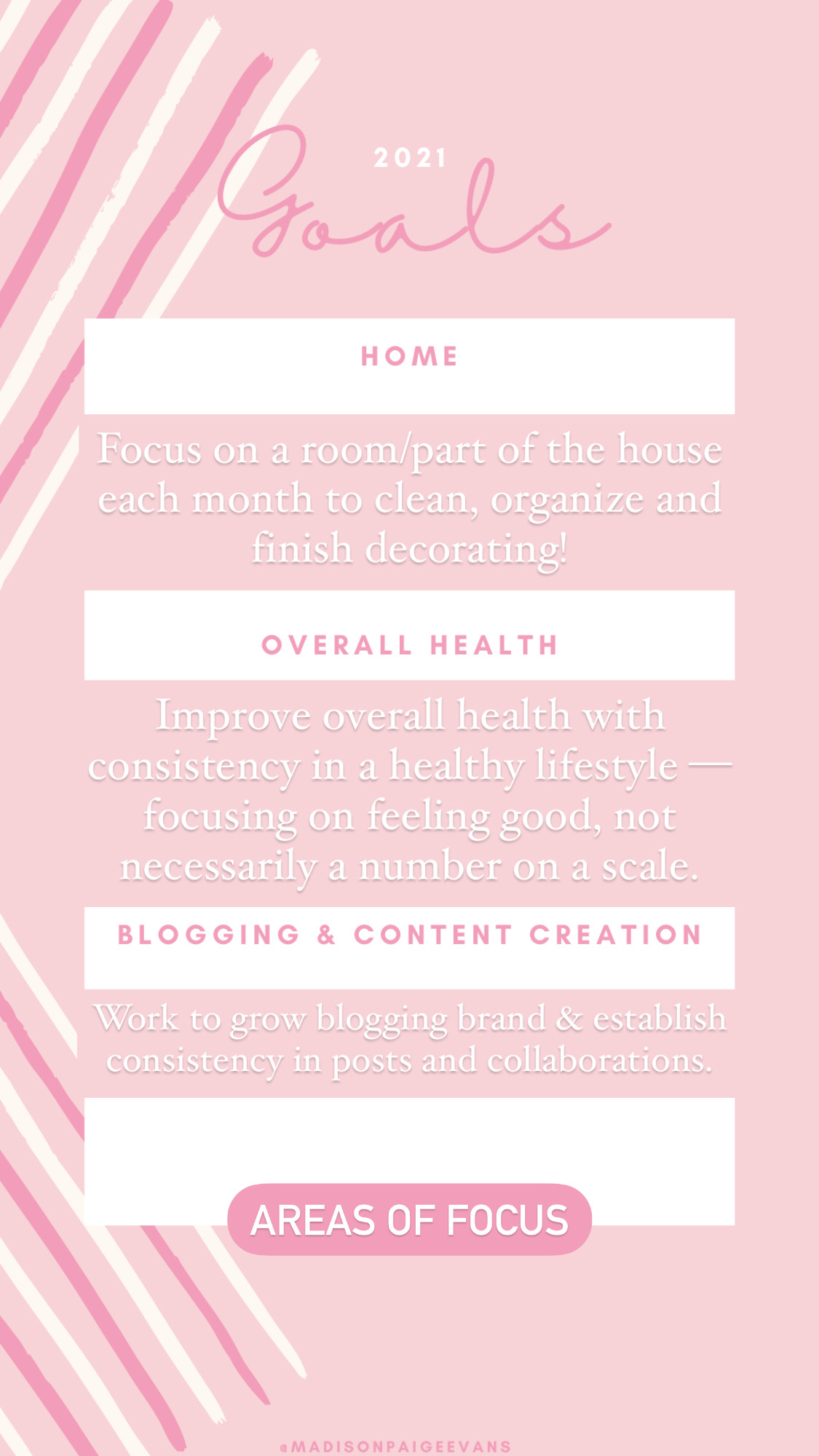 Here is an example of my three areas of focus and goals for January!