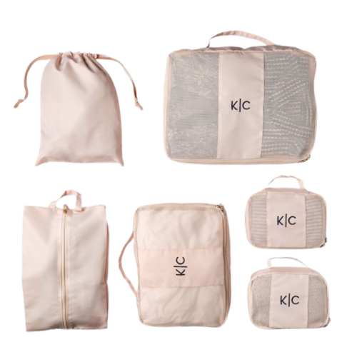 Perfect for a girl on the go. Packing cubes change the packing game and help you to not only stay organized when packing for a trip, but also save room. This set is so cute and customizable!