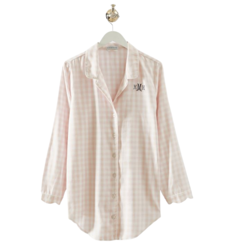 I just think this is such a cute gift for a mom! The gingham print, the style and fit of the night shirt, the monogram… it’s just perfect! Someone tell me why I keep picturing Diane Keaton in a Nancy Meyers movie where she’s sitting in bed next to her husband in the most beautiful bedroom setup, reading a book with glasses on the tip of her nose, wearing this night shirt. Call Nancy… it’s time for another movie!