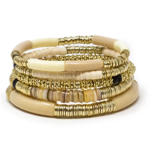 I love Allie + Bess, and this Natalie Fall stack could not be any more perfect. The neutrals mixed with gold metals make up the best combination that could be styled with countless outfits. A bracelet stack can do so much style up an outfit, and these are a great place to start!