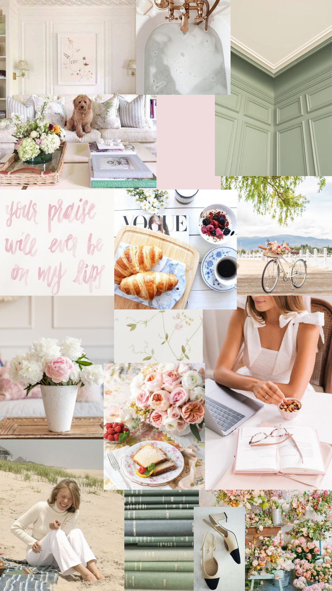 I took to some of my favorite Pinterest boards for home decor, travel, fresh flowers, and all the pretty things to gather the images I used, and I think it’s pretty obvious there are some common themes going on here. My favorite photo of all is the first one though… I mean the precious doodle pup alone is enough to land a spot, but then there’s the coffee table decor, floral and striped throw pillows, the lamp sconces, and wall trim – so many goals all in one place.