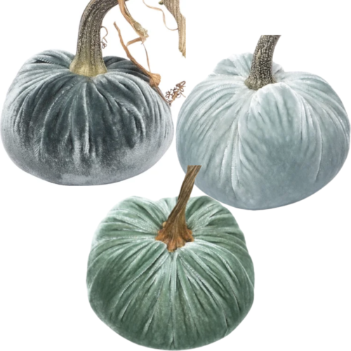 Do I *need* these velvet pumpkins?! I think so! Our dining area has a lot of blue and white and I think some of these blue and green velvet pumpkins would be so pretty on the dining table for thanksgiving!