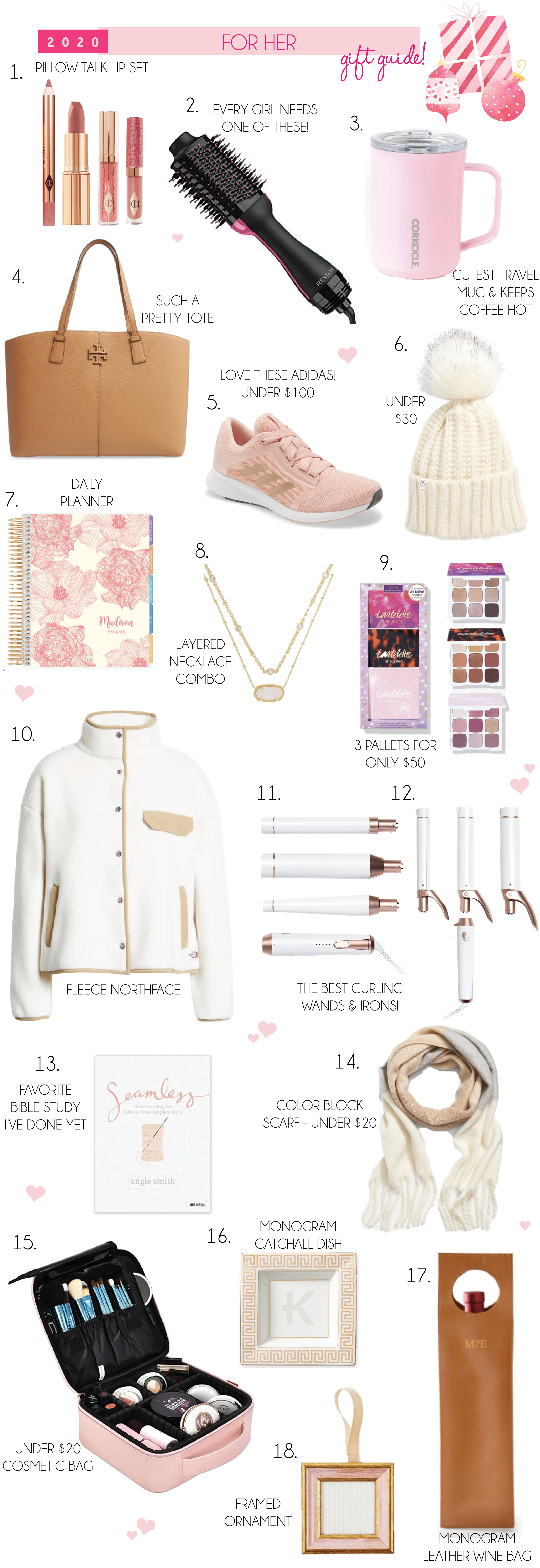 So far this week I have shared guides for parents/inlaws, for dad, for mom, for him and today it is all about HER! I hope these guides have been helpful to you and can alleviate some of the stress that comes with holiday shopping!