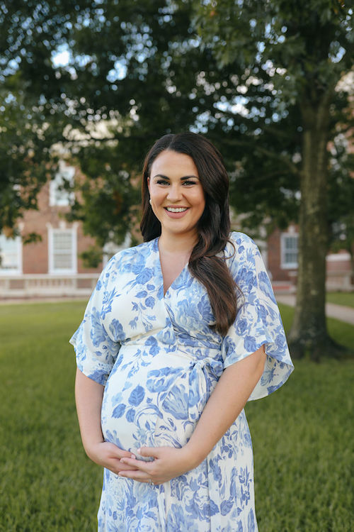 This beauty would be perfect for a special event or occasion, to wear to a wedding, or even as a bridesmaid. It is not maternity and there is little to no stretch in the fabric, but I sized up to accommodate the bump, and it worked nicely. This style also comes in seven color/print options, and there are also a few options for petite and plus size. It’s a bit more pricey than what I normally spend on a single piece, but for the occasion it was more than worth the price tag!