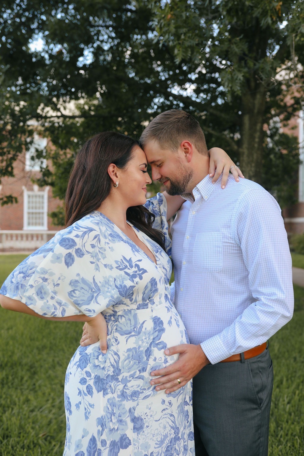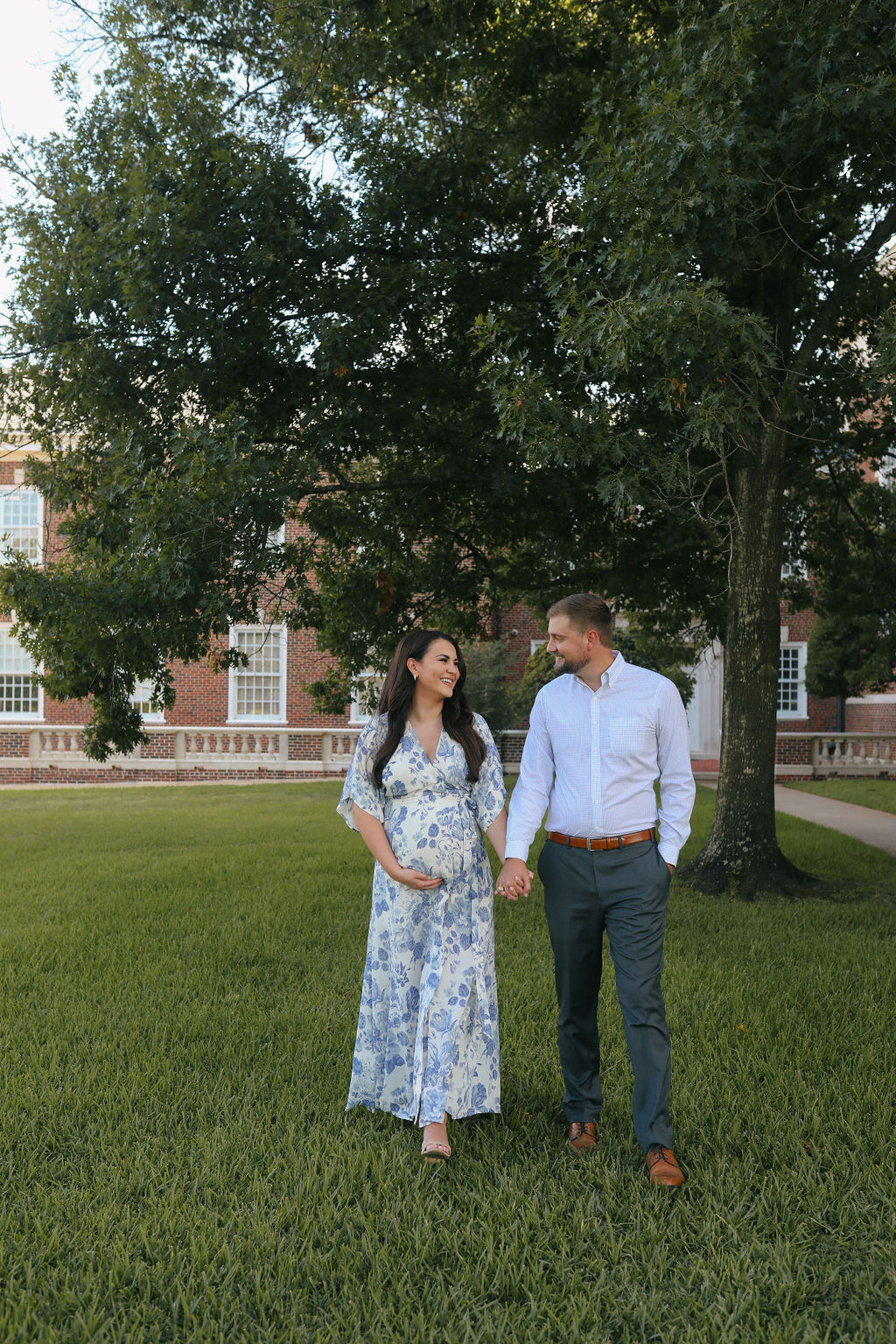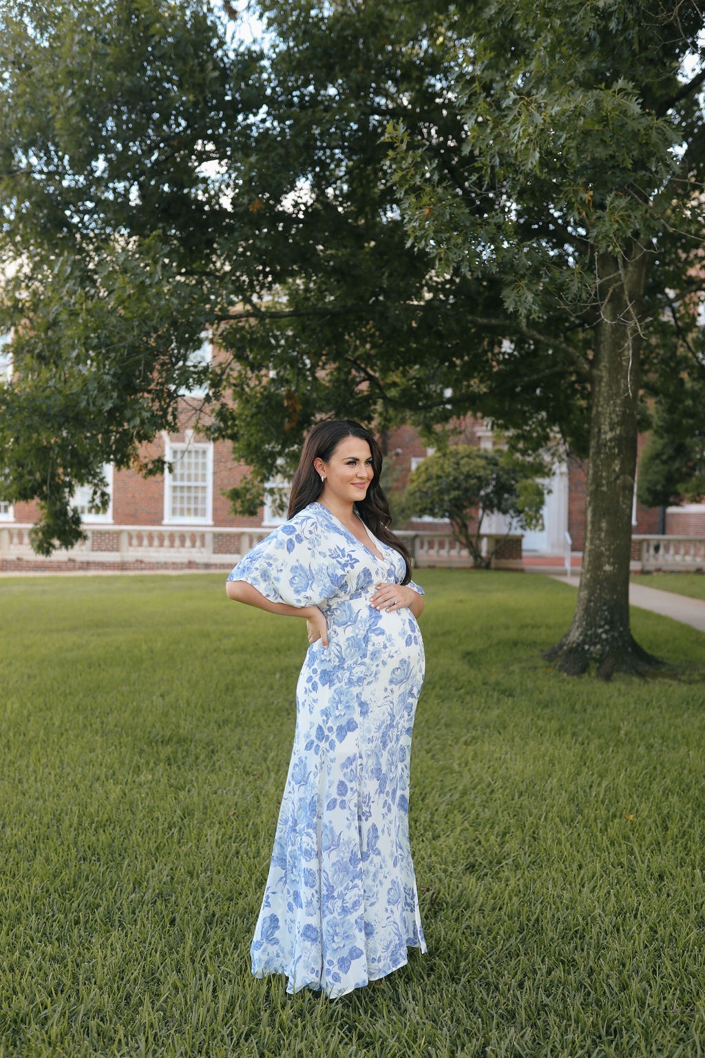 I decided to shift gears and look for non-maternity dresses that might work with my constantly growing third trimester bump and that’s when I came across the Winslow dress. It was everything I was looking for – a stunning blue and white floral print, the classic wrap silhouette, and just the right amount of flow and movement in the long skirt to give the dress an added touch of elegance.
